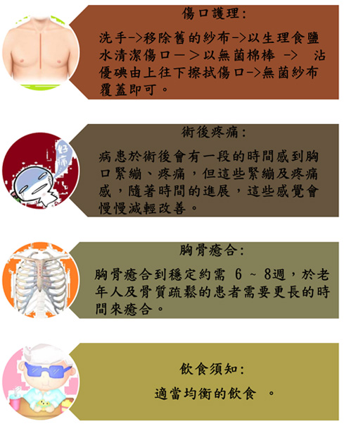 開心手術衛教-居家照護須知(一)簡易圖示版 更新/審視日期:2025-12-27 親愛的開心病患及家屬: 開心手術後經過一段時間的術後恢復期,恭喜您可以出院了。此衛教單張提供您返家後的常見的注意事項及居家照護,歡迎您與我們共同討論,期望您能有更好的生活品質。 諮詢服務電話: (02)8966-7000 轉4791~4794或 4799 心臟外科值班手機: 0926-006923 (24小時, 僅供緊急連繫使用 )