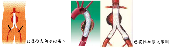 以血管內支架來治療主動脈瘤其作法是在兩側的腹股溝處作兩個小切口,將事先按病人血管大小設計好的支架由兩側的股動脈伸入腹主動脈瘤內,在X光動脈攝影的導引下,精準地放置在主動脈內,將主動脈瘤內的不正常血流加以隔絕,在成功治療之後,可以避免日後的動脈瘤破裂。在主動脈瘤的血管內支架治療手術後,不需要長時間加護病房的精密維生系統的支持和觀察,很快就可以正常進食及行動,並且通常在幾天內就可以出院。