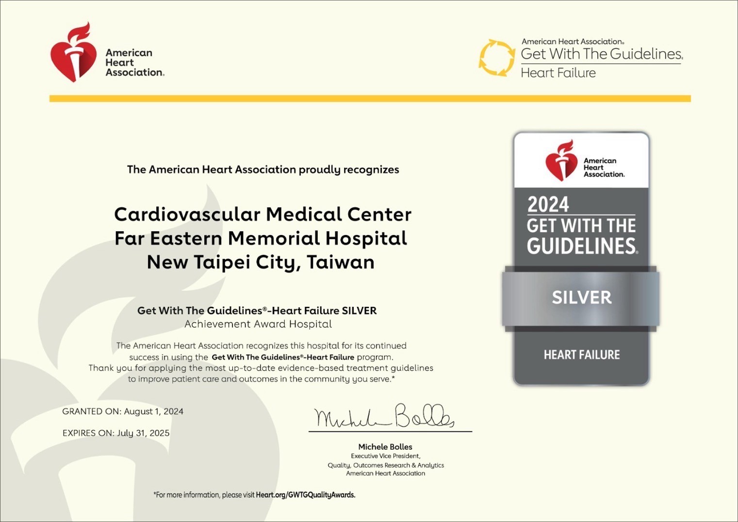 参加「AHA 美国心脏协会」之亚洲区品质改善计画HF A.S.I.A. ,荣获亚洲区【GWTG-HF银奖】