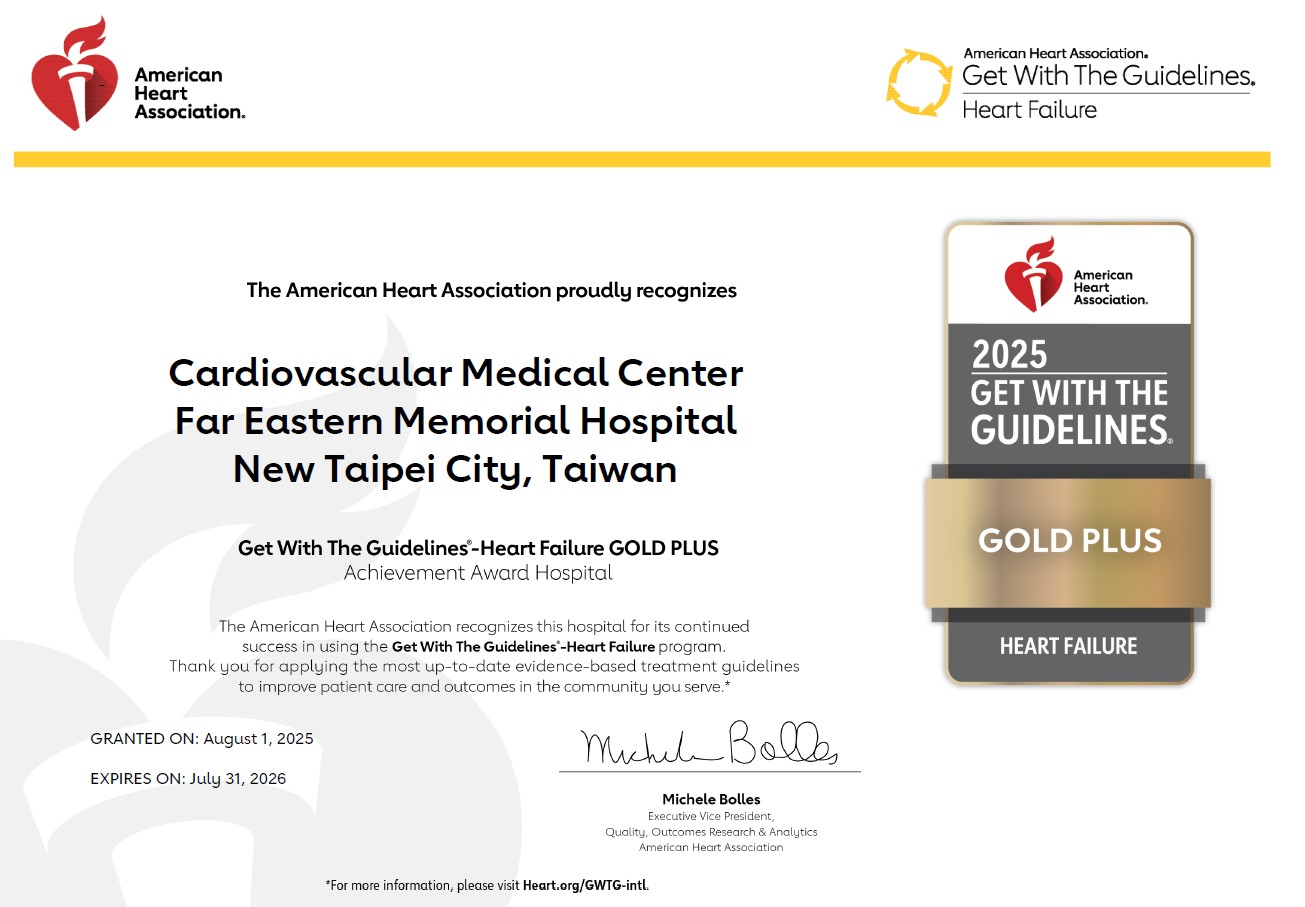 【AHA《Gold Plus》用專業守護每顆心❤️】 亞東醫院 心臟血管醫學中心榮獲美國心臟協會(AHA)《GWTG-HF Gold Plus》國際金獎肯定❗ 在吳彥雯部主任帶領下,從銅 、銀 到金 團隊三年連續躍升,每一步都是對「品質照護」的堅持與突破。 邱冠明院長 表示:醫院持續以病人為中心,結合專業與科技,與國際標準接軌;陪伴病患找回生活節奏與信心,一起為台灣心血管醫療樹立新標竿。 許榮城部主任 分享:透過跨團隊協作、標準化流程與精準管理,守護病人從住院到居家。治療只是開始,陪伴才是守護。