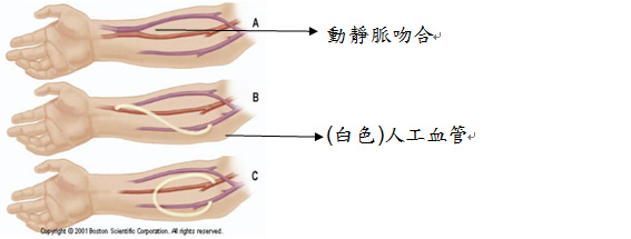 「動靜脈瘻管」是一種將動脈及靜脈血管吻合的手術,主要適用於洗腎(血液透析)的病人。 手術時會找出一條動脈與其鄰近的靜脈做吻合(常選擇橈動脈及頭臂靜脈),使靜脈血流變多並使血管膨脹,以方便行血液透析。當靜脈過於細小時則使用人工血管來替代。
